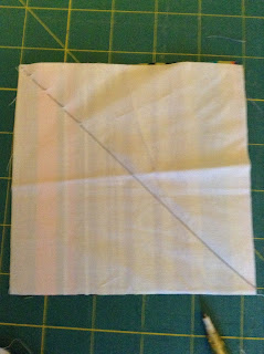 D9patch flying geese ... it starts as a series of 3 x3 5 inch squares sewn together ... then you cut through the centre .... then you cut each square into 2 triangles...